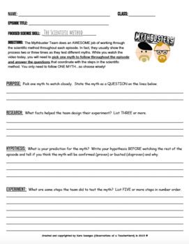 I Use This Digital Worksheet As A Google Doc For My Science Class For Any Mythbusters Episode I Show In Class.