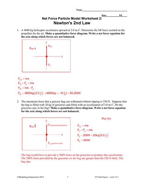 Net Force Particle Model Worksheet 5. A 4600 kg helicopter accelerates upward at 2.0 m/s2. Newton's second law and friction.